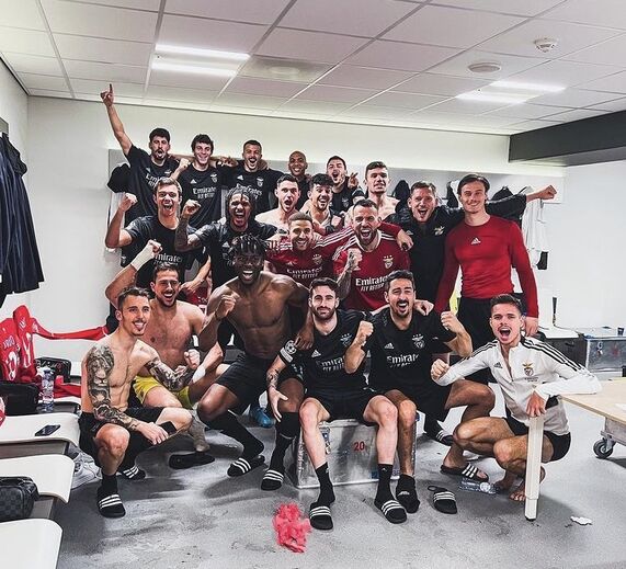 A festa do apuramento continuou no balneário do Benfica