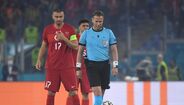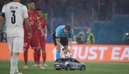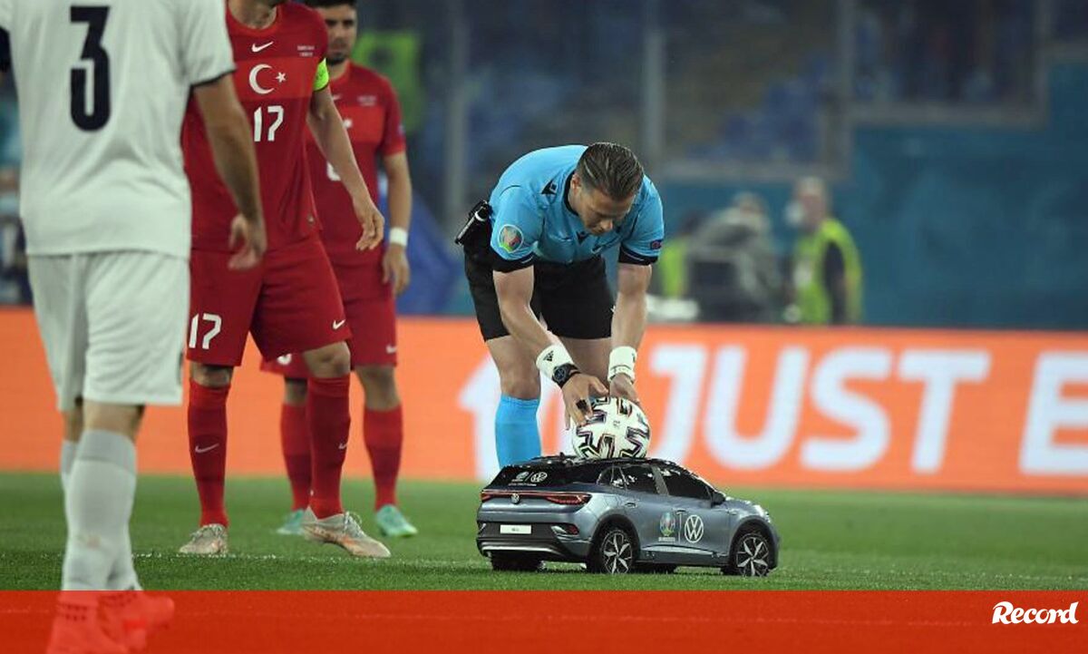 A forma curiosa como o árbitro do Turquia-Itália recebeu a bola antes do apito inicial