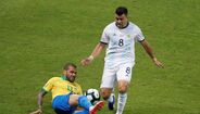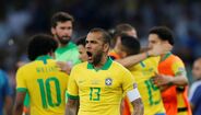 Dani Alves protagonizou esta madrugada, diante da Argentina, um momento insólito aquando de um livre de Leo Messi. Conhecedor das capacidades do adversário, até porque já partilhou balneário com La Pulga no Barcelona, o defesa direito ajoelhou-se e pareceu rezar a todos os 'santinhos' para pedir ajuda divina... No final, o pedido deu certo, já que Messi não marcou e o Brasil avançou para a final da Copa América. (Fotos: EPA e Reuters)