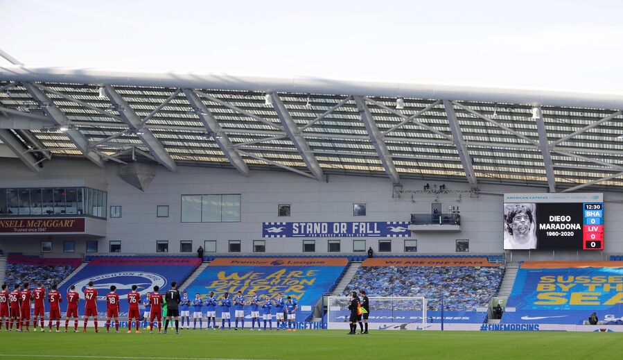 Antes do Brighton-Liverpool jogadores e equipas técnicas homenagearam Maradona com uma salva de palmas. El Pibe morreu esta semana aos 60 anos