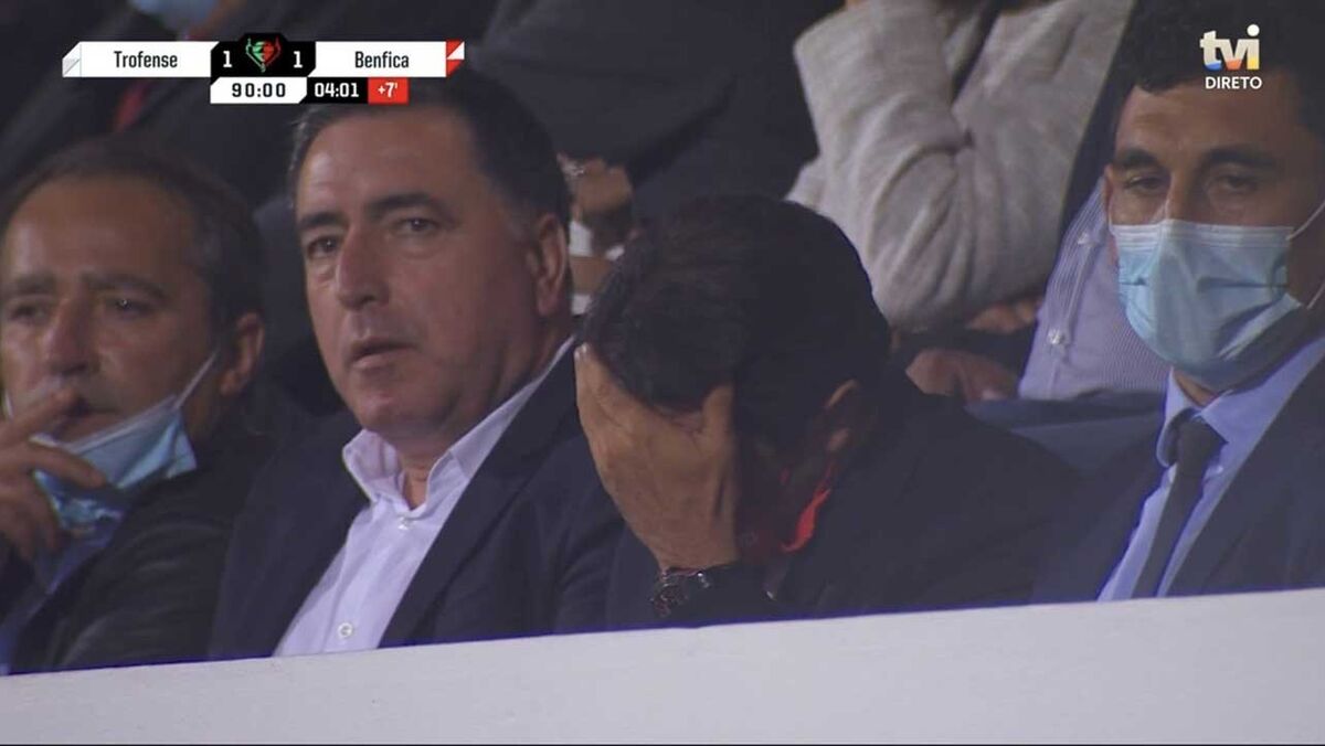 Já nos descontos do Trofense-Benfica, foi visível o sofrimento de Rui Costa. O presidente encarnado levou mesmo a mão à cara após novo lance desperdiçado pelas águias, onde Everton centrou para as mãos do guarda-redes contrário quando tinha colegas em boa posição na área.