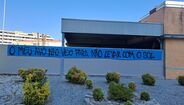 Tarjas colocadas em vários pontos no exterior do recinto do Famalicão