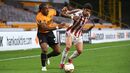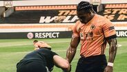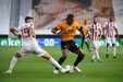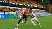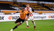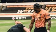 A história correu o Mundo e aqui está a prova de que é mesmo real. Esta quinta-feira, durante o encontro com o Olympiacos, um elemento da equipa técnica do Wolverhampton colocou uma dose generosa de óleo de bebé para impedir que o craque dos lobos fosse agarrado pelos adversários. (Fotos: Reuters e Getty Images)