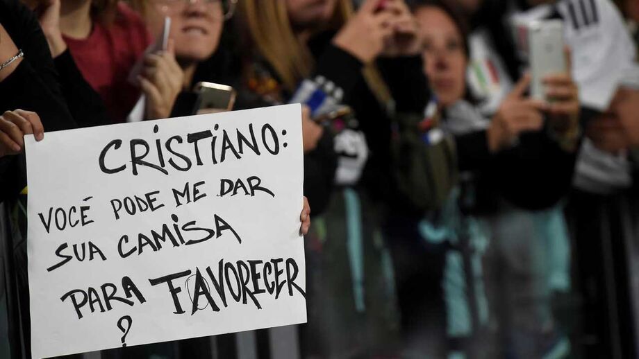 Antes do Juventus-Bolonha desta quarta-feira, surgiu uma pequena tarja na bancada do Allianz, com um adepto bianconero a fazer um pedido a Cristiano Ronaldo em português. Mas alguma coisa se terá perdido na tradução na última palavra... [Fotos: Reuters e EPA]