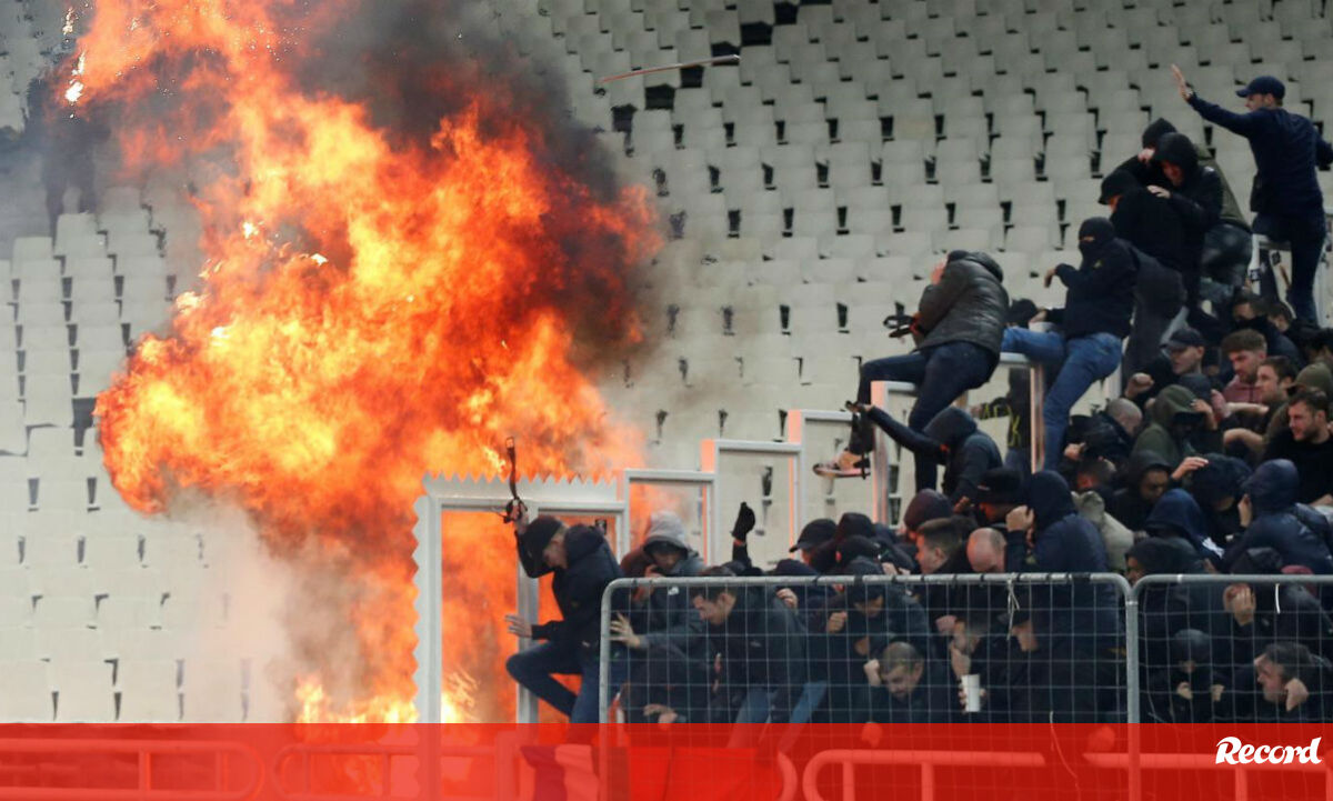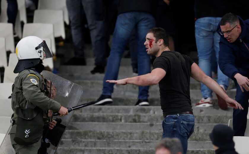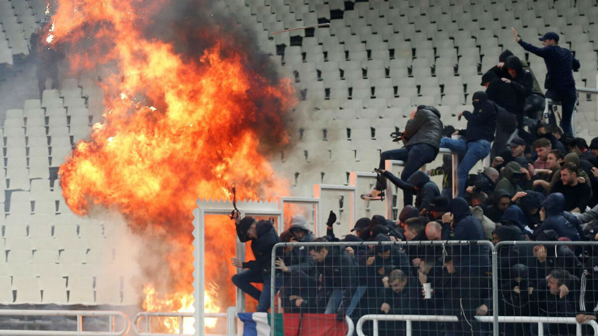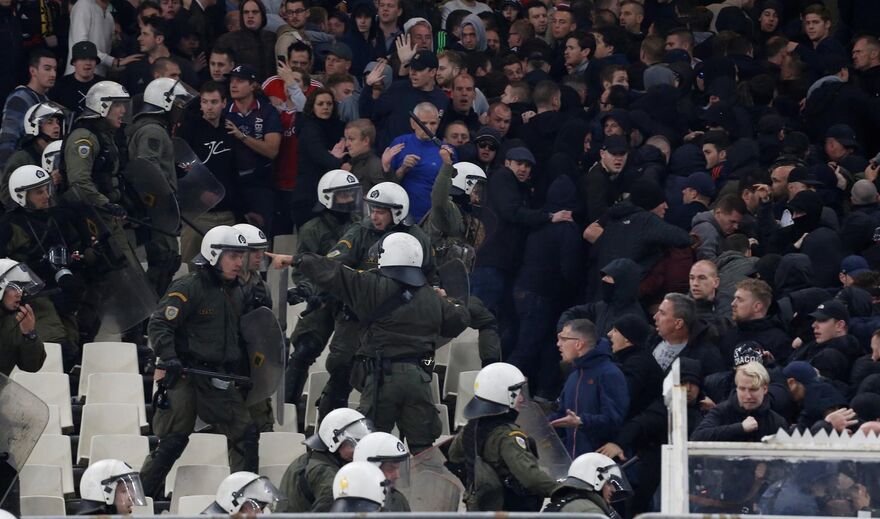 O árbitro ainda não tinha dado início ao AEK-Ajax, para a Liga dos Campeões, e já havia registos de violência nas bancadas. Adeptos do AEK terão, alegadamente, atirado tochas para o local onde estavam os fãs do Ajax, causando alguns feridos. A polícia acabou por intervir logo a seguir. [Fotos: Reuters]