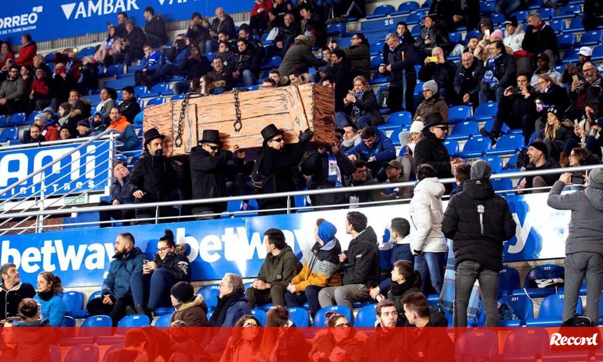 Adeptos do Alavés em protesto até um caixão levaram para o estádio