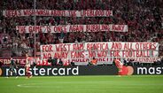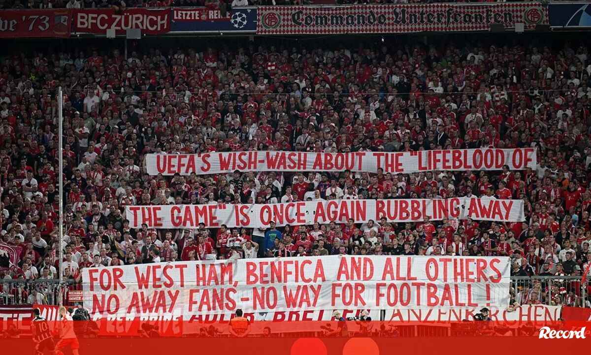 Adeptos do Bayern visam UEFA em tarja com referência também ao Benfica