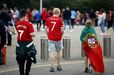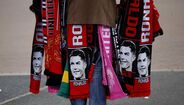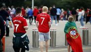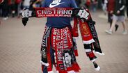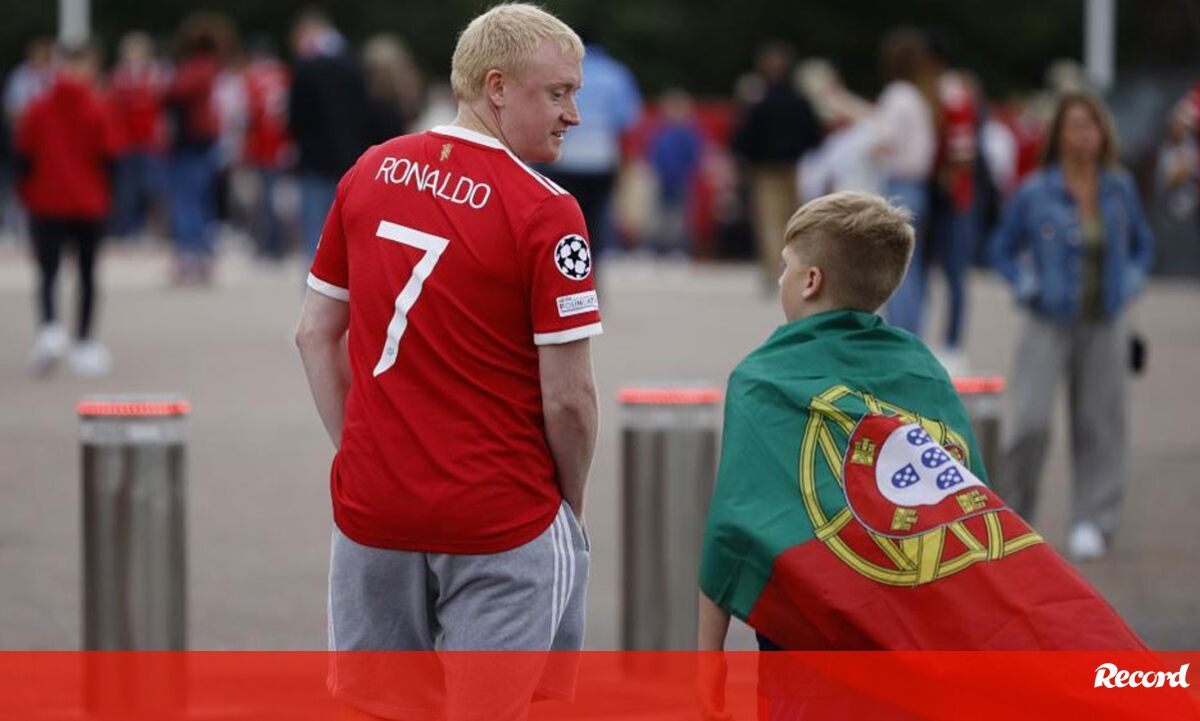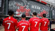 Adeptos do Man. United já mostram as novas camisolas em Old Trafford: há 'Ronaldos' por todo o lado