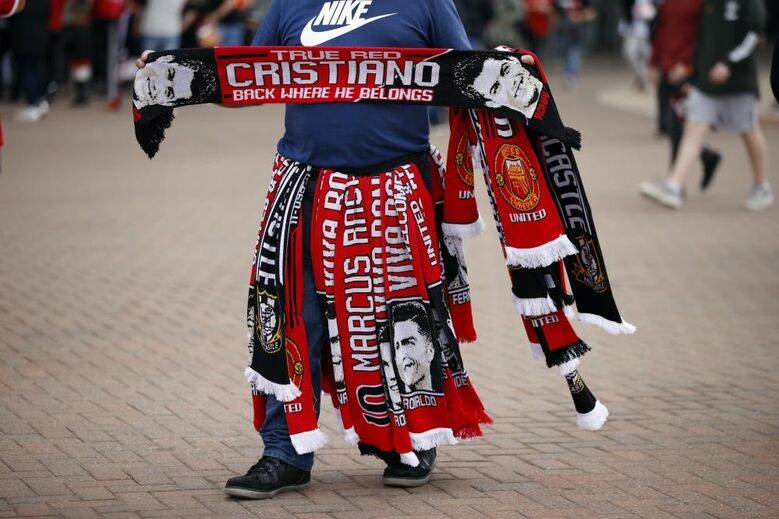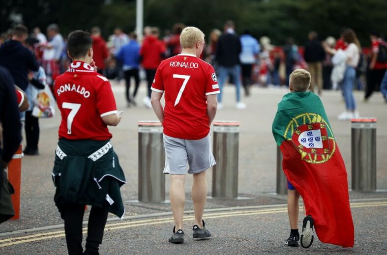 Solskjaer confirmou que Cristiano Ronaldo "estará em campo" frente ao Newcastle no jogo que arranca às 15 horas, mas junto a Old Trafford já há muitos... CR7. A romaria ao estádio já começou e, com camisolas ou cachecóis, os adeptos não escondem o entusiasmo para voltar a ver o internacional português novamente com as cores dos red devils (Fotos Reuters)