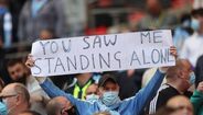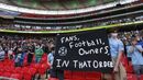 Os adeptos de Manchester City e Tottenham não esquecem a 'traição' dos seus clubes ao terem participado no lançamento da Superliga Europeia. Hoje, em dia de duelo entre as duas equipas na final da Taça da Liga Inglesa (que poderá seguir aqui em direto), insurgiram-se nas bancadas de Wembley com mensagens contra as suas direções, pedindo, inclusive, a sua saída. [Imagens: Reuters]