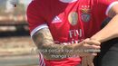 A SIC Notícias mostrou esta quinta-feira as primeiras imagens oficiais das novas camisolas do Benfica para a temporada 2019/20, numa sessão fotográfica na qual os modelos escolhidos pelas águias foram Eduardo Salvio, Jardel, Ferro, Pizzi e Alex Grimaldo. As camisolas apresentadas, refira-se, são as mesmas que nas últimas semanas foram adiantadas pelos portais especializados e que Record em tempo oportuno publicou.