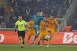 Diante do FC Porto, o Anderlecht atua com um onze inicial no qual três jogadores (Degreef, Simic e Stroeykens) jogam sem o patrocínio principal na parte da frente da camisola (a Napoleon Sports and Casino, uma das principais casas de aposta do país). A situação deu que falar nas redes sociais, mas é prática comum na Bélgica, já que a lei de apostas desportivas do país impede que menores de 21 anos façam publicidade a casas de jogo nas suas camisolas. A proibição é válida também aos clubes visitantes - como se viu no recente jogo do Aston Villa em casa do Club Brugge -, mas o FC Porto, por atuar com Heróis (uma campanha alternativa da Betano), não é afetado por essa medida. (Fotos: Reuters e EPA).