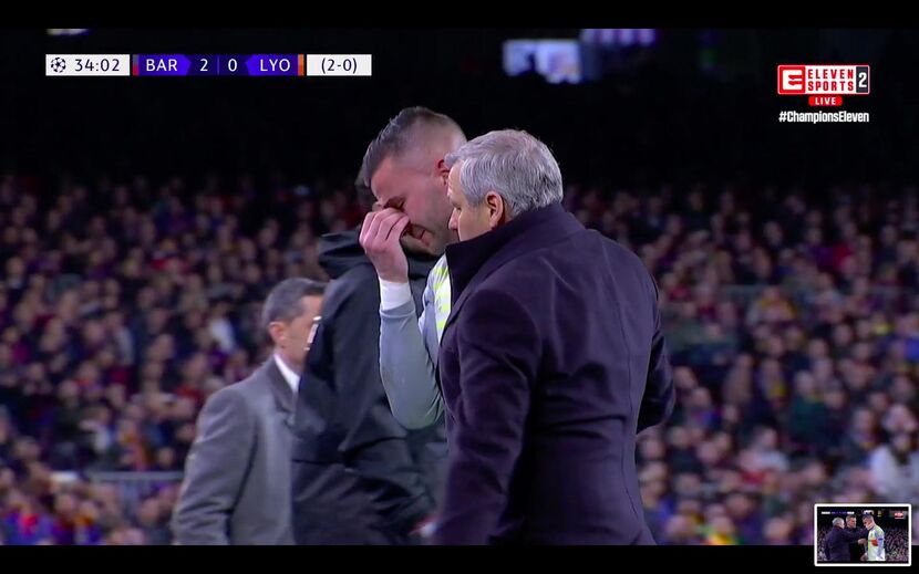 Substituído pouco depois da meia hora no duelo com o Barcelona, Anthony Lopes deixou o relvado de Camp Nou em lágrimas.