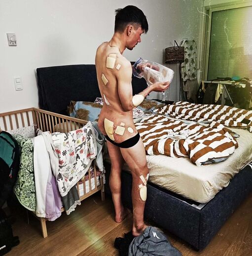 Primoz Roglic esteve envolvido na aparatosa queda na Volta ao País Basco, que envolveu vários ciclistas, e nas redes sociais o esloveno, de 24 anos, mostrou as impressionantes marcas da ida ao chão... (Fotos Instagram)