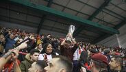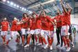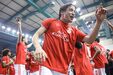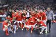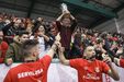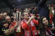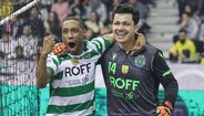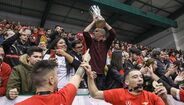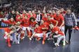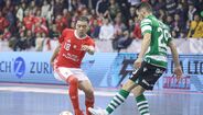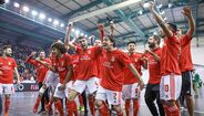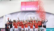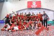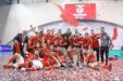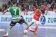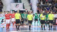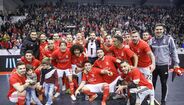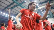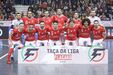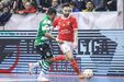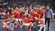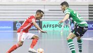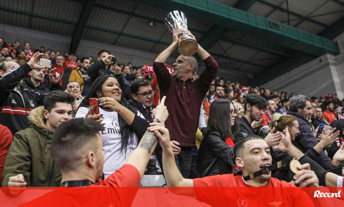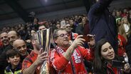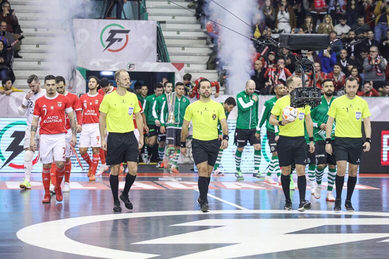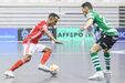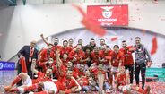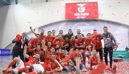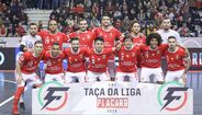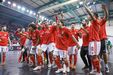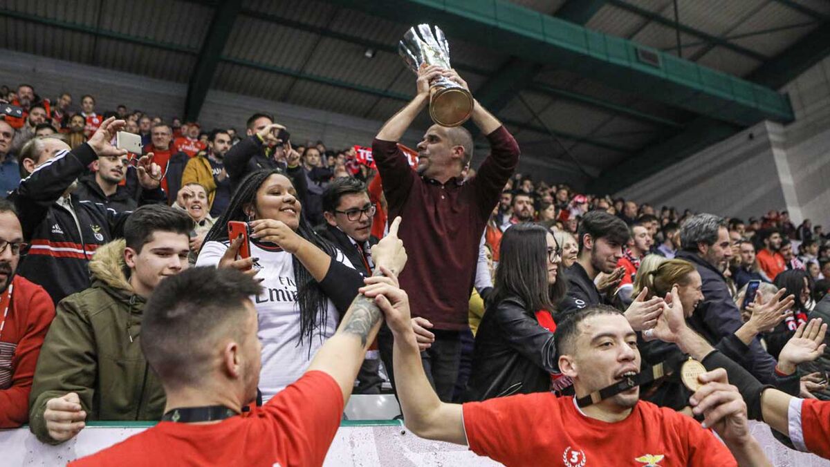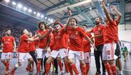 A festa do Benfica após vencer o Sporting e conquistar a Taça da Liga de futsal