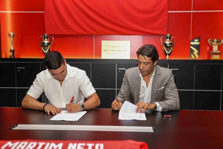 Martim Neto renovou esta terça-feira contrato com o Benfica, com o novo vínculo a ser válido até 2028. Através de uma publicação no site oficial, o clube divulgou as imagens do momento em que o jovem jogador formado no Seixal assinou o novo contrato na companhia do presidente do clube Rui Costa. [Imagens: SL Benfica]