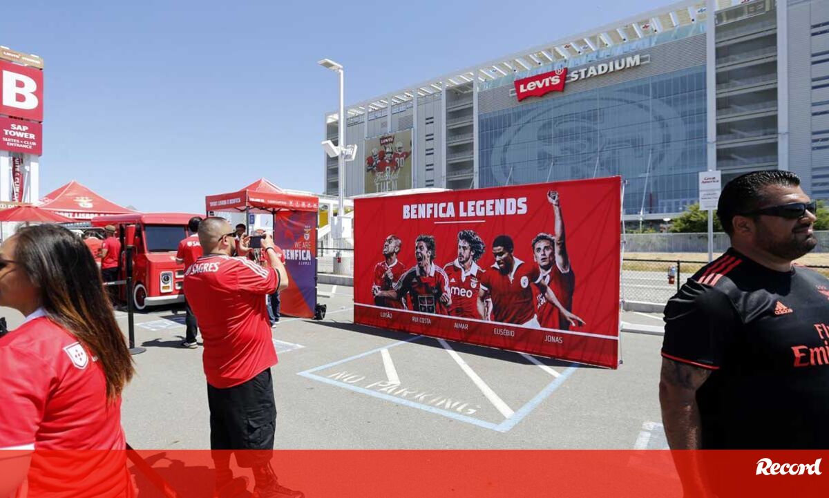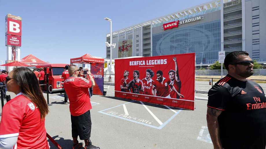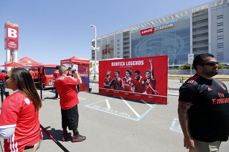 As imagens do Benfica-Chivas: sombreros, adeptos portugueses em força e a placa com as lendas das águias