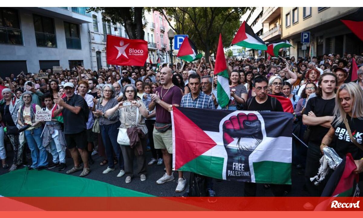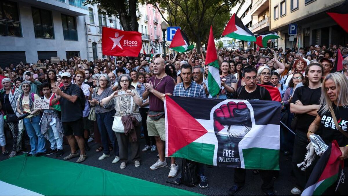 Em solidariedade com a Palestina, centenas de manifestantes juntaram-se na tarde desta quinta-feira junto à embaixada de Israel, em Lisboa, concretamente em protesto pela detenção dos cidadãos portugueses que seguiam nas embarcações com ajuda humanitária da Flotilha Global Sumud. A Marinha israelita tem agido para impedir que os barcos da flotilha entrem nas águas territoriais palestinianas.