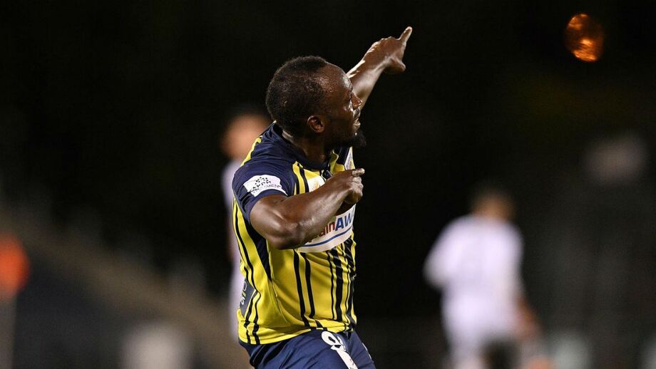 O ex-velocista jamaicano Usain Bolt - recordista mundial dos 100 (9,58 segundos) e dos 200 metros (19,19 segundos), que trocou as pistas pelos relvados -, marcou esta sexta-feira os seus primeiros golos como futebolista profissional pelo Central Coast Mariners no triunfo por 4-0 sobre o South West United, num jogo particular de pré-temporada, na Austrália. (Fotos EPA)