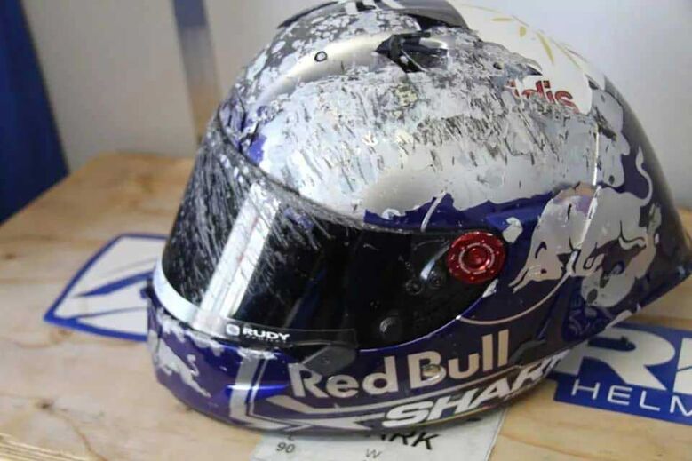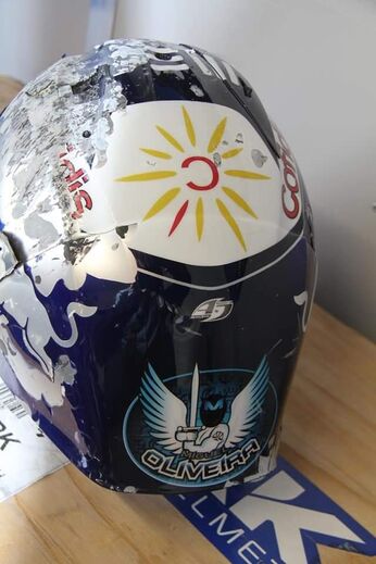 Assim ficou o capacete de Miguel Oliveira após a violenta queda desta manhã