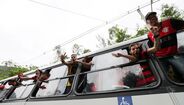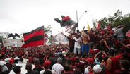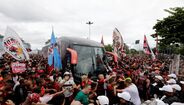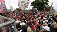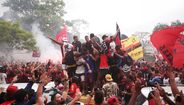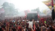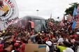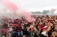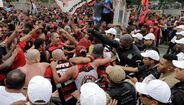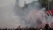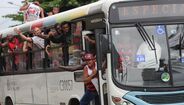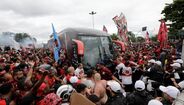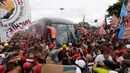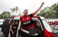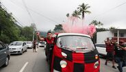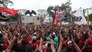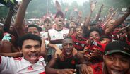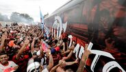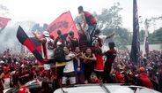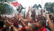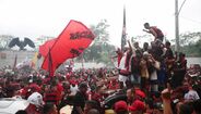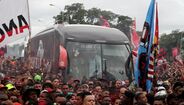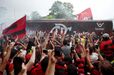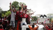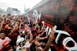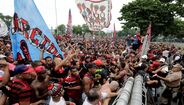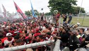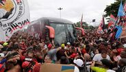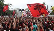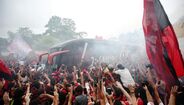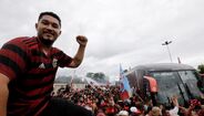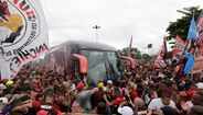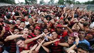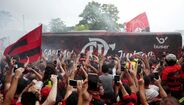 Foram milhares os adeptos do Flamengo que, desde o centro de treinos do clube até ao Aeroporto do Galeão, acompanharam a equipa orientada por Jorge Jesus antes da viagem para Lima, no Peru, palco da final da Libertadores (jogo será no sábado, diante do River Plate). Um apoio que deixou rendido o próprio treinador português. [Fotos: Reuters]