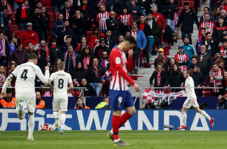 Bale apontou o 100º golo pelo Real Madrid, assinando o terceiro dos blancos (74’) na vitória, por 3-1, na visita ao Atlético Madrid. Ao festejá-lo... fez um manguito em direção aos fãs do rival! O gesto está a causar grande indignação em Espanha e não só entre os adeptos dos rojiblancos. O galês está a ser muito criticado. [Fotos: EPA e Reuters]