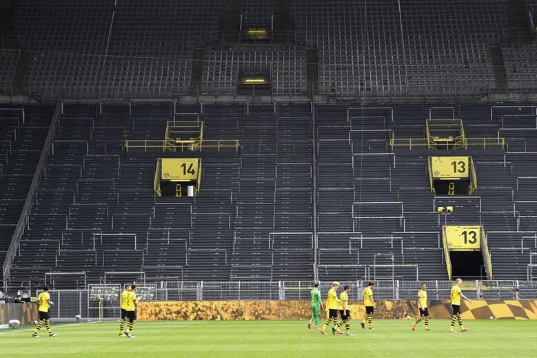 Bancadas vazias, bolas desinfetadas e suplentes afastados: o retrato do dérbi em Dortmund