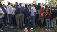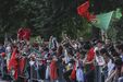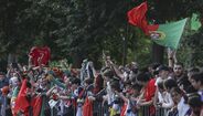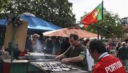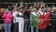 Foram milhares os adeptos que, em euforia, receberam a Seleção Nacional à chegada a Marienfeld, na Alemanha