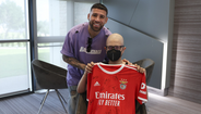 Benfica ajuda jovem adepto a concretizar sonho: autógrafos e fotografias com jogadores na visita ao Seixal
