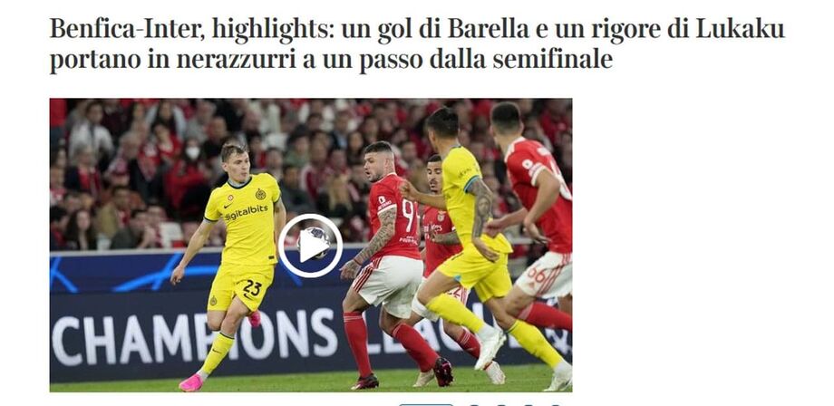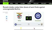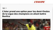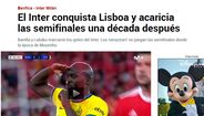 O Benfica foi derrotado ontem na Luz pelo Inter (0-2) na 1.ª mão dos quartos de final da Liga dos Campeões. Na imprensa internacional, multiplicaram-se os elogios à equipa italiana; a imprensa transalpina sublinha também a 'ajuda' da mão de João Mário à sua ex-equipa. Na Bélgica, fala-se mesmo no "desmascarar" do Benfica