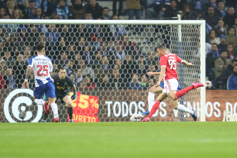 Vinícius marca novamente no Estádio do Dragão. O avançado brasileiro bisou, aos 50 minutos, após jogada com Rafa e voltou a relançar o clássico, que ainda favorece aos dragões (3-2). [Imagens: Movephoto]