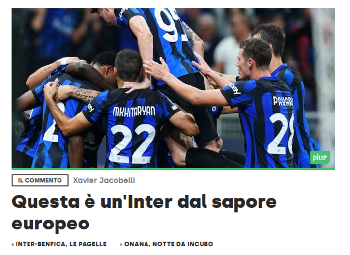 Di María "esgotado", um Inter que "esmagou" o Benfica e os "milagres de Trubin". É assim que a imprensa italiana analisa, esta quarta-feira, a vitória do Inter diante das águias (1-0) na fase de grupos da Liga dos Campeões, sublinhando a superioridade dos nerazzurri na partida. (Imagens: Pedro Ferreira, 'Corriere dello Sport', 'Gazzetta dello Sport' e 'Tuttosport')