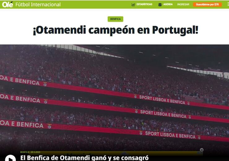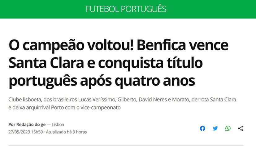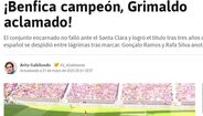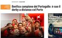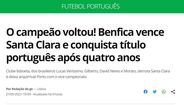 O Benfica sagrou-se ontem campeão nacional pela 38.ª vez, uma conquista que passou discreta nos sites da imprensa internacional