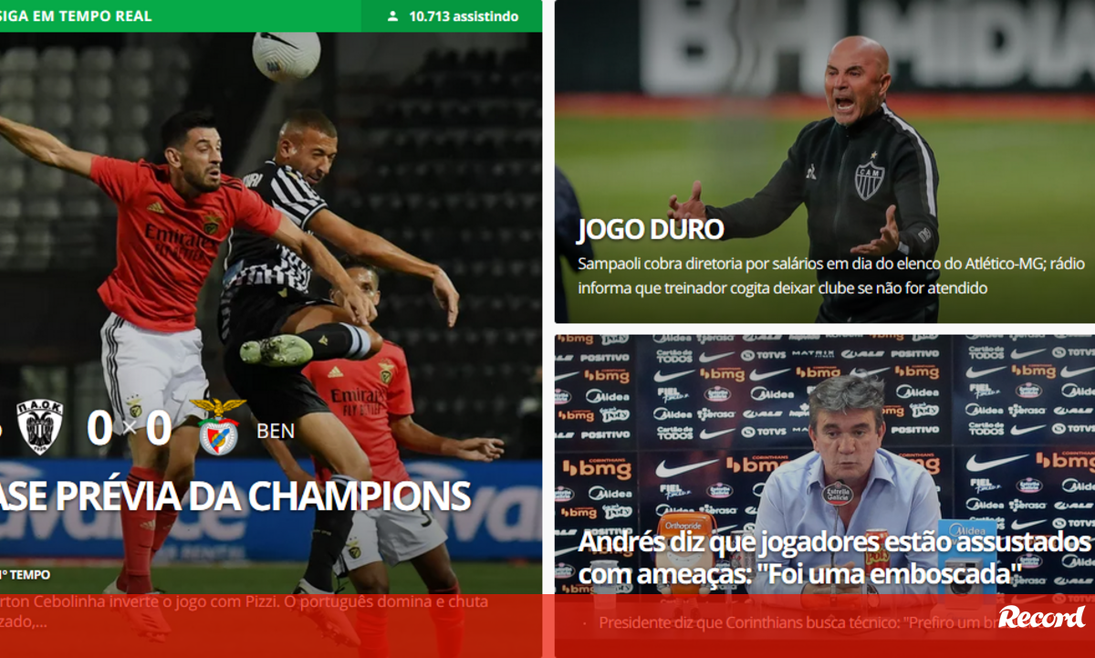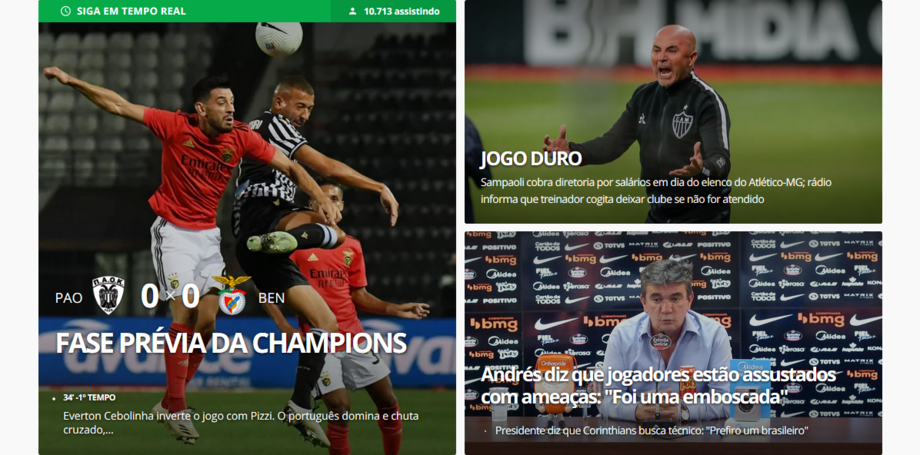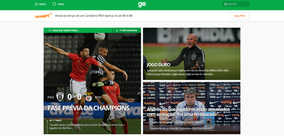 Com Jorge Jesus no comando técnico e dois brasileiros na equipa inicial (Everton e Pedrinho), o portal Globoesporte dá amplo destaque ao duelo do Benfica com o PAOK, colocando-o mesmo na sua manchete.