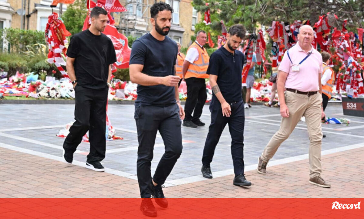 Bruno Fernandes, Diogo Dalot e Ruben Amorim foram esta segunda-feira a Anfield prestar homenagem a Diogo Jota e André Silva. Os portugueses do Manchester United deixaram uma coroa de flores no memorial que continua a 'crescer' junto ao estádio do Liverpool.