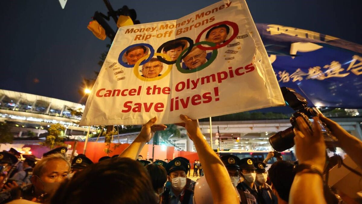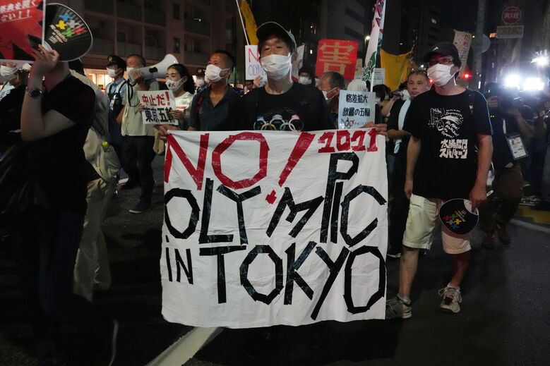 Centenas de pessoas saíram às ruas para protestar contra a realização dos Jogos Olímpicos de Tóquio'2020. "Cancelem os Jogos, salvem vidas", pode ler-se em um dos muitos cartazes que centenas de protestantes mostram nas imediações do Estádio Olímpico de Tóquio, durante a cerimónia de abertura da prova. [Imagens: Reuters e Action Images]