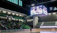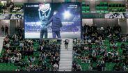 Os adeptos do Sporting que marcaram hoje presença no Pavilhão João Rocha, para assistir ao duelo contra o Barcelona para a primeira mão dos quartos de final da Liga dos Campeões de hóquei em patins, foram presenteados com imagens do jogo da equipa principal de futebol, que em Itália disputava diante da Atalanta o apuramento para os 'quartos' da Liga Europa. A transmissão do encontro passou nos ecrãs gigantes do Pavilhão João Rocha e várias dezenas de adeptos não arredaram pé das bancadas para ver o clube do coração. [Imagens: Paulo Calado]