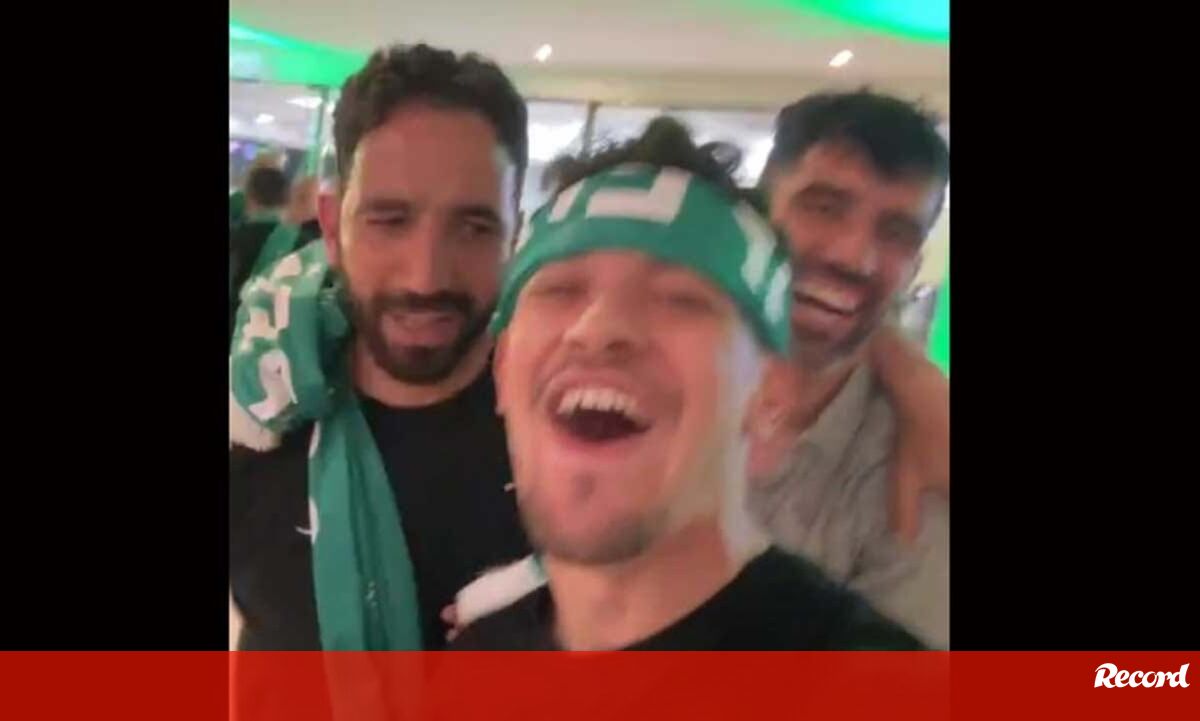 Ainda em Alvalade, onde assistiram ao Famalicão-Benfica, os jogadores do Sporting já estão a celebrar o título antes de rumarem ao Marquês de Pombal.