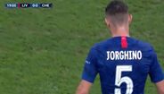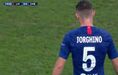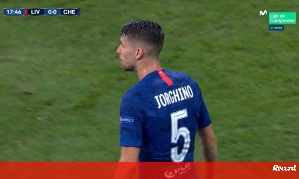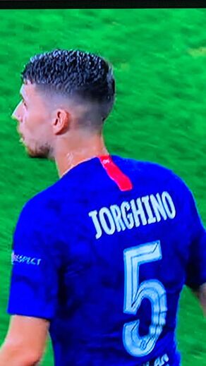 A Supertaça Europeia não teve qualquer golo na meia hora inicial, mas não deixou de ter um momento para apontar. Neste caso uma situação insólita a envolver Jorginho, que entrou em campo com uma camisola com o seu nome... mal escrito.