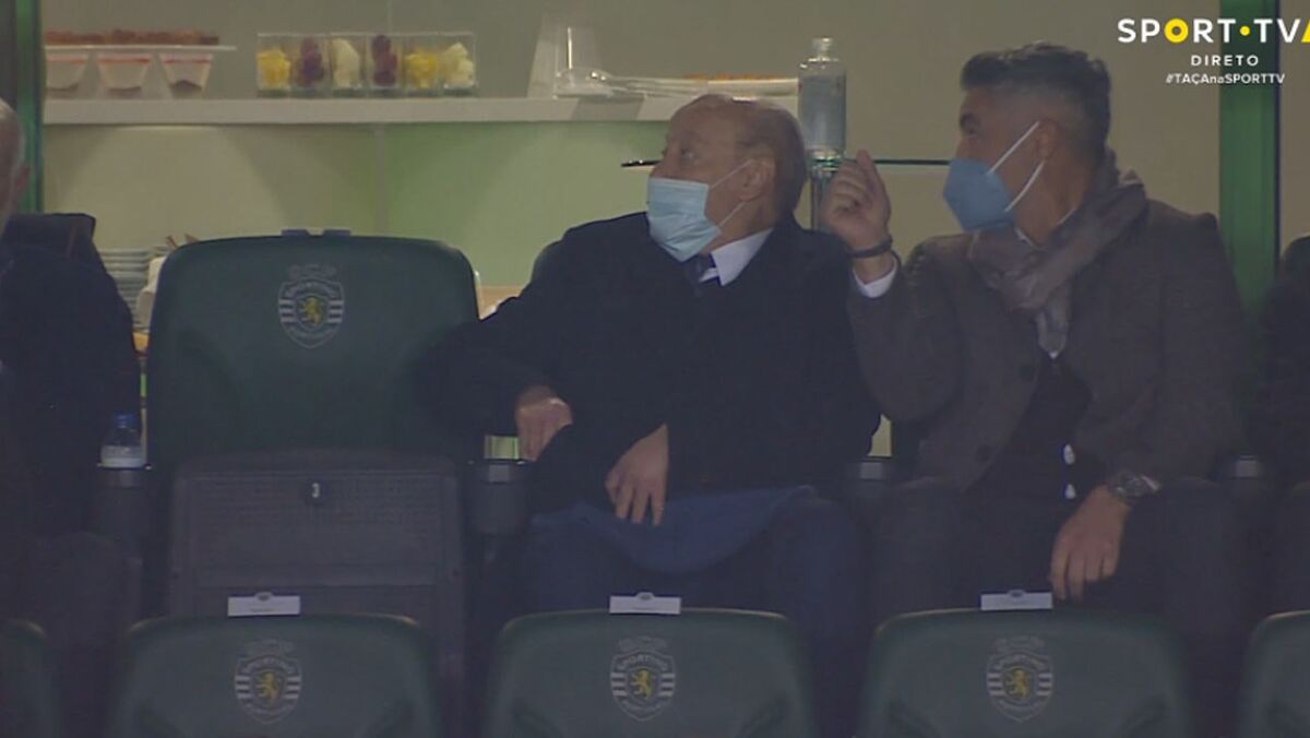 Copos de fruta atrás de Pinto da Costa e Vítor Baía a chamar a atenção do presidente do FC Porto