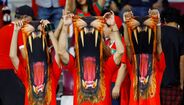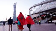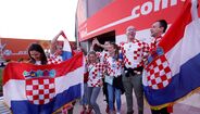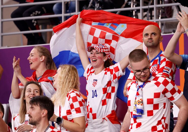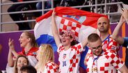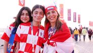 A poucos minutos do apito inicial do Croácia-Marrocos, que vai decidir quem termina em 3.º lugar no Mundial'2022, é assim que está o ambiente no Khalifa International Stadium. Ivana Knöll, fervorosa adepta croata, também marca presença nas bancadas [Créditos: Reuters]