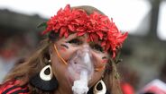 Viu-se de tudo um pouco nas bancadas do Maracanã antes do duelo entre Flamengo e Santos... (Fotos: Reuters)