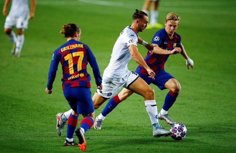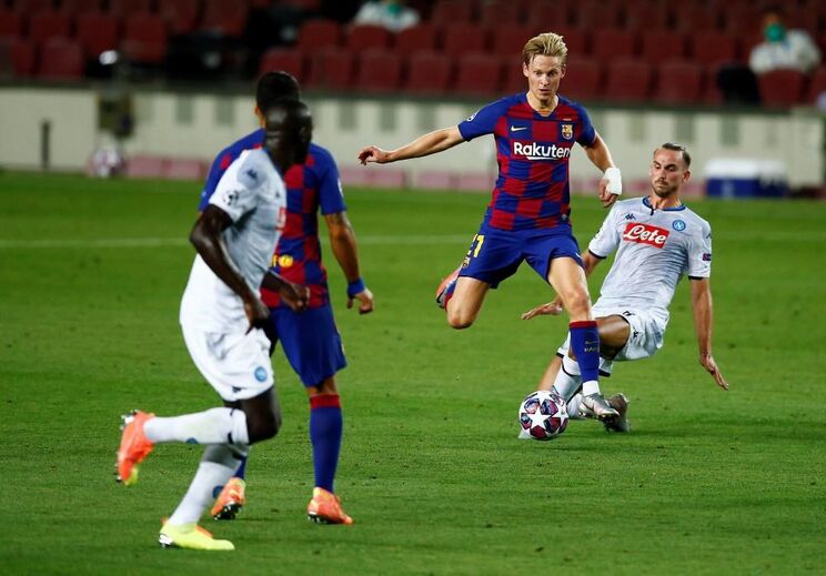Frenkie de Jong defrontou ontem o Nápoles com uma ligadura na mão esquerda e foi a namorada do holandês quem revelou o que se passou: o jogador foi picado por abelhas... (Fotos Instagram e Reuters)