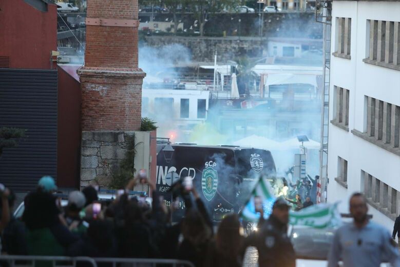 Depois de uma brutal manifestação de apoio à saída do José Alvalade, pouco depois das 17h00, os adeptos do Sporting, desta vez a Norte, voltaram a prestar apoio à equipa de futebol, que chegou a Gaia, onde vai estagiar até ao clássico, ao início da noite deste sábado: mesmo limitados pelas baias colocadas pela PSP, os cânticos foram bem audíveis e as tochas bem visíveis, ações às quais a comitiva acenou com sorrisos e alguns braços no ar. Alguns jogadores vieram mesmo à janela do hotel para agradecer.
