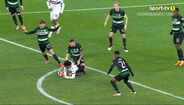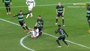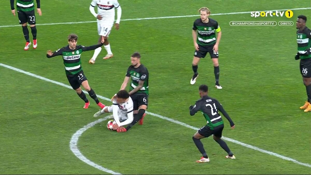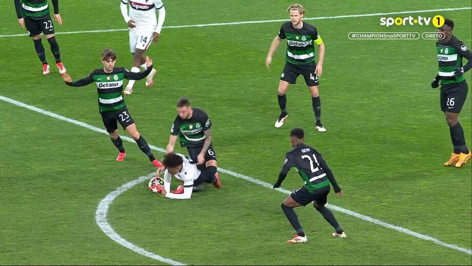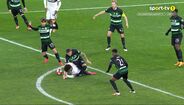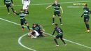 Aos 48 minutos do Sporting-Bolonha, Debast ficou muito queixoso depois de um adversário lhe ter caído em cima do pé. O central belga, que hoje atuou no meio-campo, saiu mesmo lesionado e em grandes dificuldades, tendo sido substituído por João Simões. (Imagens: Frames/Sport TV)