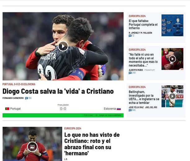 Veja o que a imprensa internacional diz sobre a vitória de Portugal sobre a Eslovénia nos penáltis, que permitiu a passagem aos quartos de final do Euro'2024.