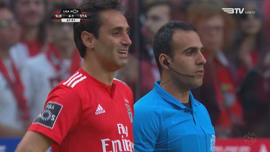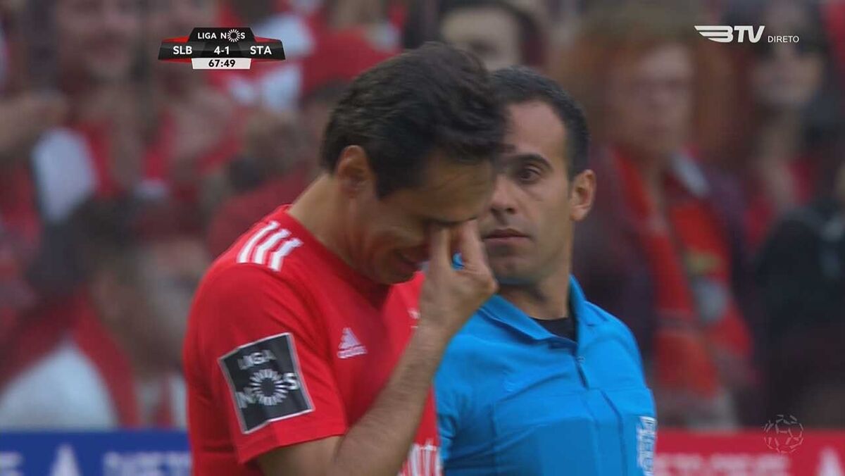 Aos 69' do Benfica-Santa Clara, Jonas entrou em campo para substituir João Félix e não evitou as lágrimas antes da substituição, dados os muitos aplausos que os adeptos lhe prestaram.