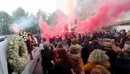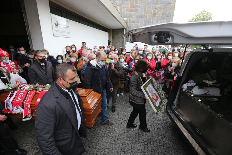 Realizaram-se esta tarde as cerimónias fúnebres de Maria Amélia Morais, a popular adepta do Sp. Braga que ficou conhecida como Melinha. Momentos de emoção no último adeus, com vários cachecóis do clube do seu coração a terem sido colocados sobre a urna e com muitos adeptos a entoarem cânticos e a deflagrarem potes de fumo na despedida de um rosto intimamente ligado à história dos guerreiros do Minho. António Salvador, presidente do Sp. Braga, marcou presença nas cerimónias fúnebres, realizadas em Braga. [Fotografias: Ricardo Jr]