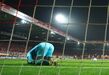 O empate entre Union Berlim e Bochum (1-1) para a Bundesliga, deste sábado, ficou marcado por um exemplo de enorme fairplay no final, quando as duas equipas fizeram uma espécie de 'pacto' e decidiram não atacar nos últimos minutos depois de Patrick Drewes, guarda-redes da equipa visitante, ter sido atingido na cabeça por um isqueiro arremessado das bancadas. Ora, o guardião foi substituído em dificuldades - ao fim de cerca de 28 minutos de paragem na partida - e o Bochum, como não tinha mais alterações, colocou na baliza o avançado Philipp Hofmann, que não teve trabalho precisamente pela decisão tomada pelas duas equipas, que simplesmente trocaram a bola até ao apito final de Martin Petersen. (Imagens: Reuters)