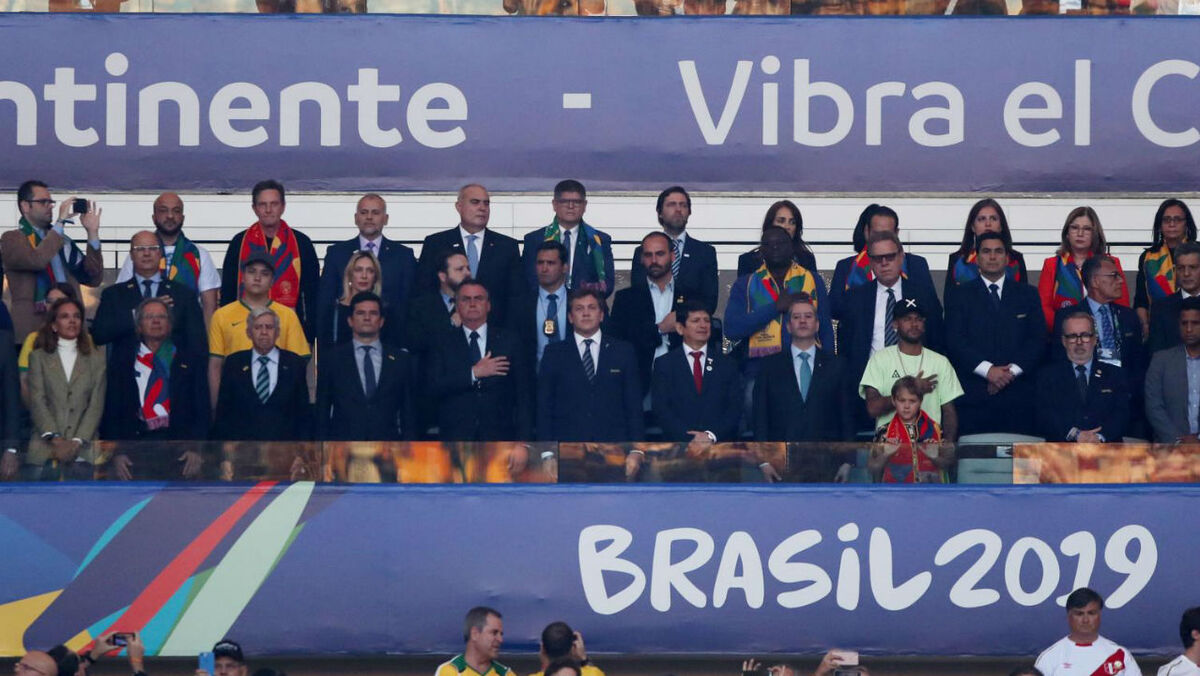 Neymar, jogador da seleção brasileira que está lesionado, assistiu ao Brasil-Peru na tribuna presidencial do Maracanã e deu nas vistas pela roupa informal que apresentou, apesar de estar sentado na mesma fila de vários executivos, incluindo Jair Bolsonaro.